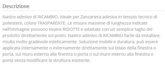 Nastro adesivo di ricambio per zanzariere a strappo