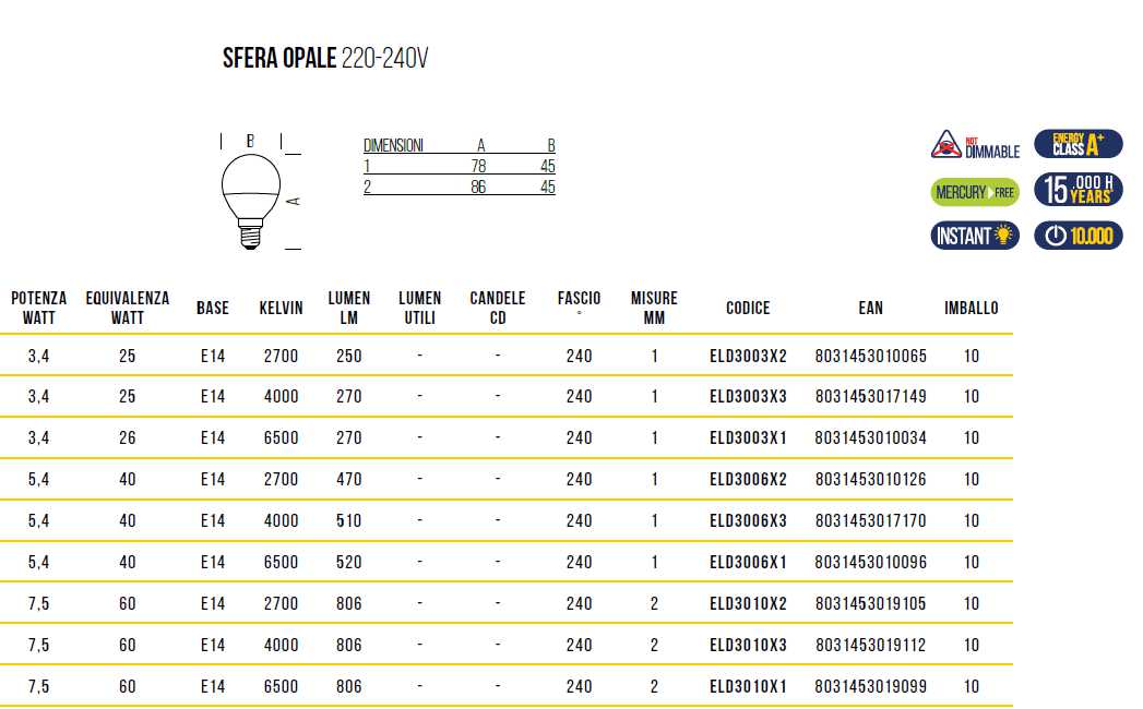 LAMP SFERA OPALE E14 7W CA