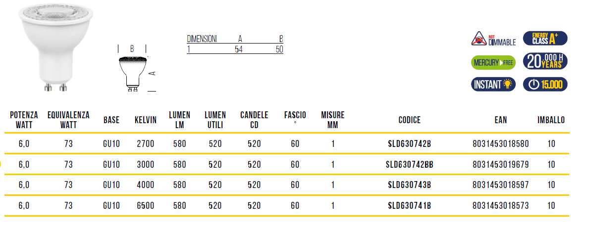 LAMP LED GU10 4.2W 360L CA