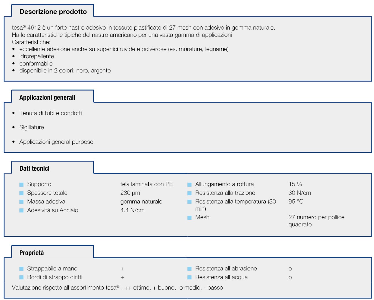 Resistente alle temperatura da -20°C a +80°C ed agli agenti atmosferici (non secca)
