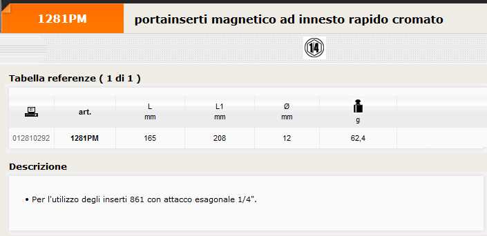 882 PORTAINSERTI 1/4 X AVV