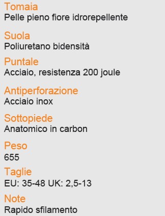 Tomaia in pelle pieno fiore idrorepellente con lamina antiperforazione e rapido sfilamento