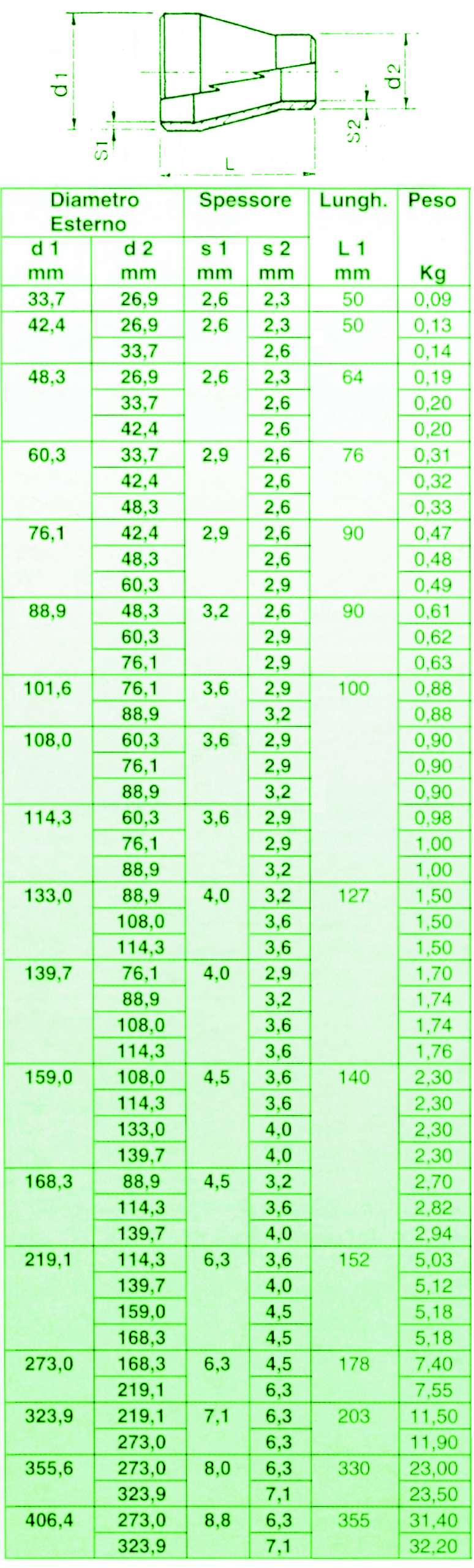 Riduzione contentrica da tubo senza saldature