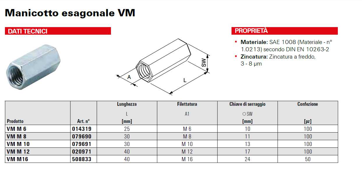 Manicotto per barre filettate in acciaio zincato