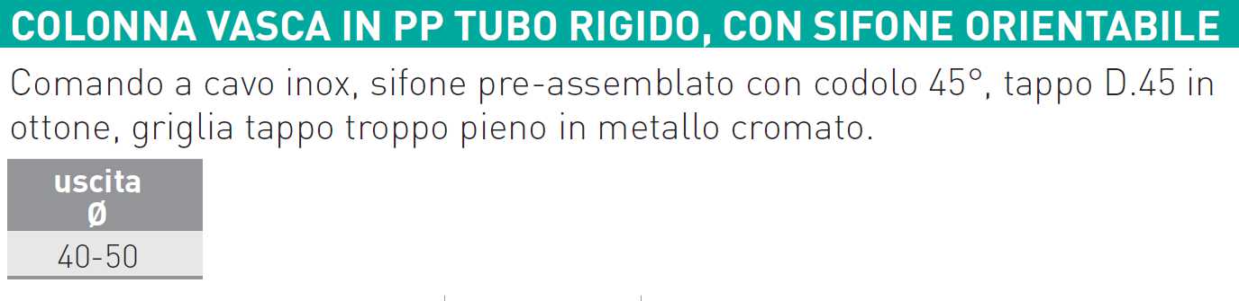 Colonna vasca in PP tubo rigido, con sifone orientabile