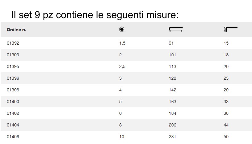 Il set contiene 9 chiavi esagonali snodate