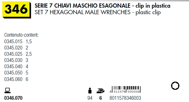 Serie 7 chiavi esagonali MUNDIAL