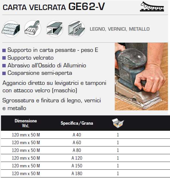 Aggancio diretto su levigatrici e tamponi con attacco velcro (maschio)Per sgrossatura di legno, vernici e metallo