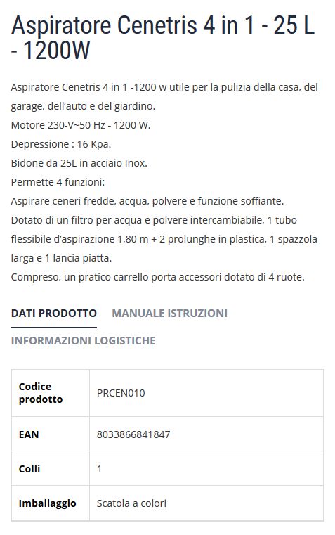 Aspiratore CENETRIS 4in1 1200W